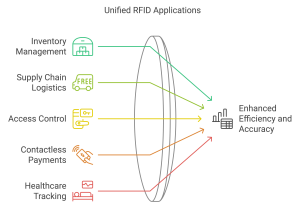 RFID technology is utilized in numerous applications, including inventory management, supply chain logistics, access control, contactless payment systems, and even in healthcare for tracking medical equipment and patients.