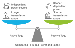 - Semi-passive Tags: These tags have a battery but only use it to power the tag’s circuitry, relying on the reader for communication.